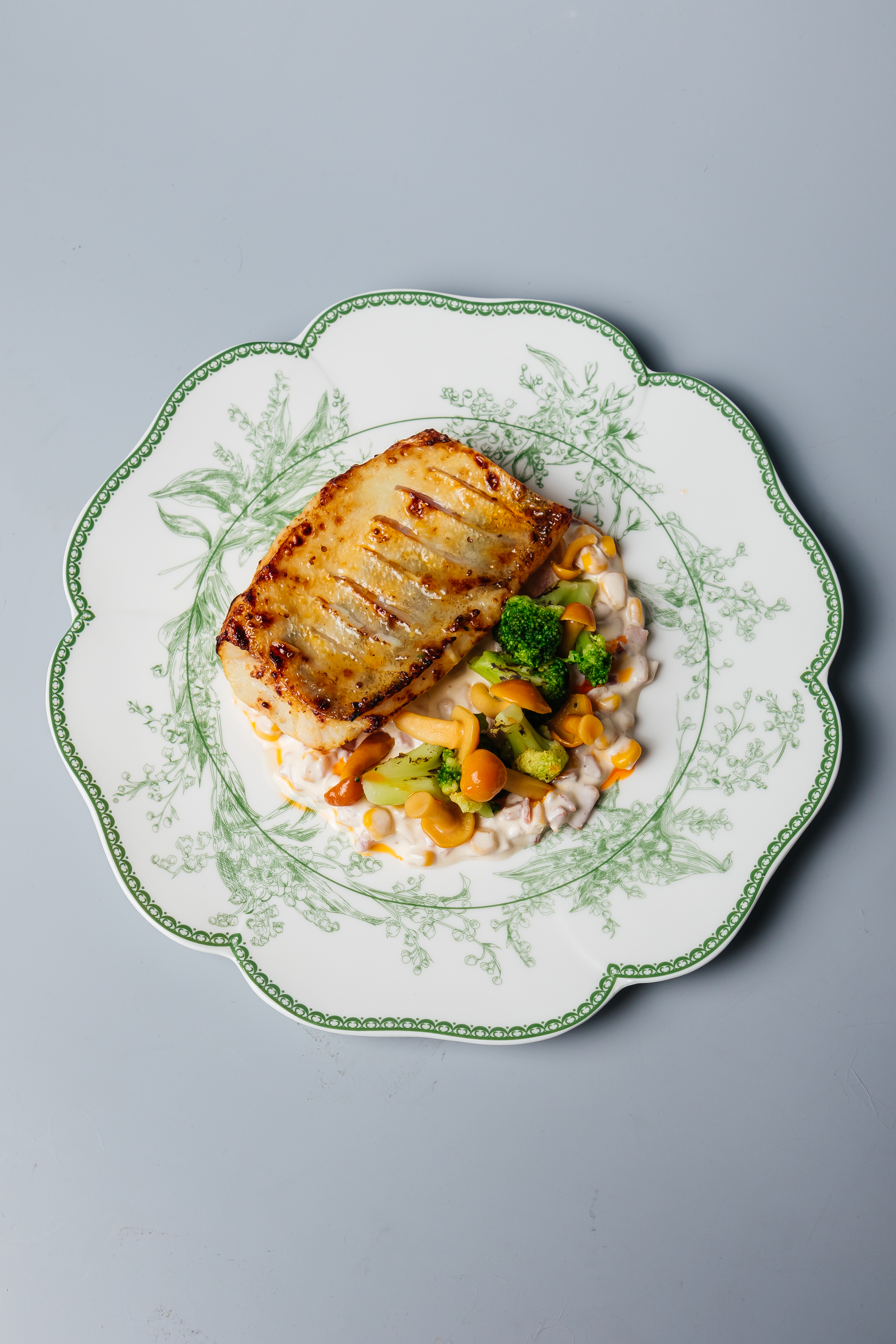 Лосось на подушке из голландского соуса с бейби-картофелем